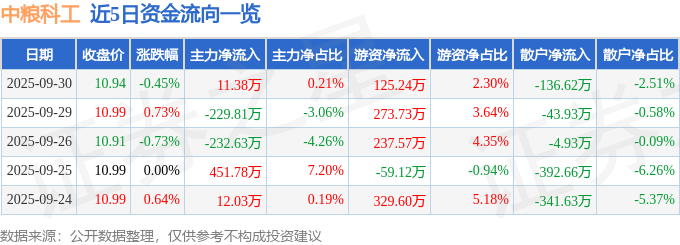证券之星消息✿◈◈★,截至2025年9月30日收盘✿◈◈★,中粮科工(301058)报收于10.94元✿◈◈★,下跌0.45%236rr✿◈◈★,换手率0.97%✿◈◈★,成交量4.97万手✿◈◈★,成交额5449.97万元✿◈◈★。